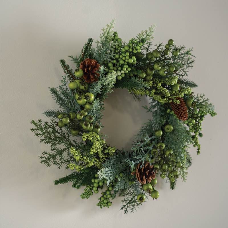Invite the richness of the forest into your home with this lush 70-inch evergreen garland. A natural medley of textured greenery—cedar, pine, and fir—is artfully accented with clusters of green berries and rustic pinecones for an understated, yet elegant touch. Whether draped across a mantel, wrapped along a banister, or styled as a centerpiece, it brings a sense of organic...read more