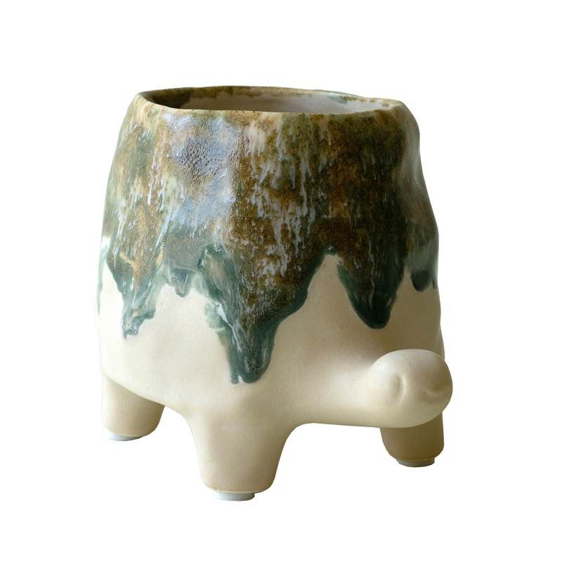 Slow and steady wins the race . This ceramic turtle vase has a color bleed in olive green with a natural base. Grab one for your garden area or succulent stash. Turtles in home decor symbolize longevity, stability, and tranquility, making them a meaningful and stylish addition to any space. These charming accents bring a touch of nature-inspired serenity to shelves, tables, or garden settings.