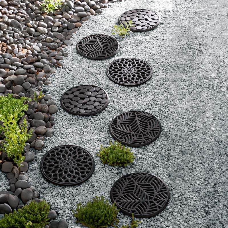 These stepping stones make an instant non-slip path in the garden. No prep is necessary; just drop and go! Long-lasting vulcanized coir rubber wont crack, chip, or break. The recycled rubber mats are an eco-friendly and long-lasting solution for your garden. Use several sets of three to create a path. You can also use them as accents in a flower...read more