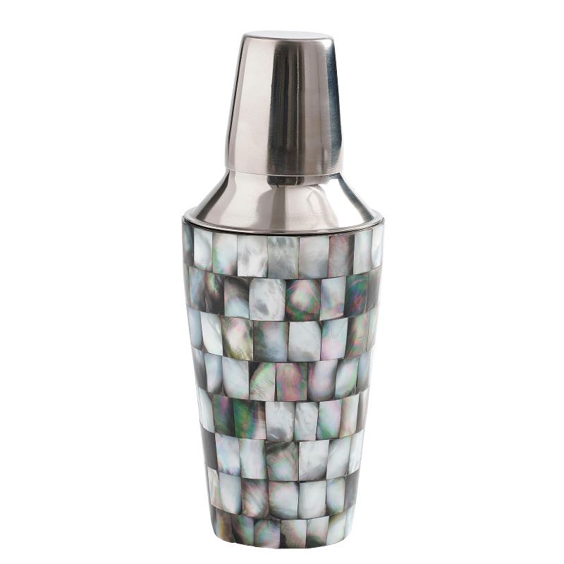 Abalon Stainless Steel and Mother of Pearl Cocktail Shaker