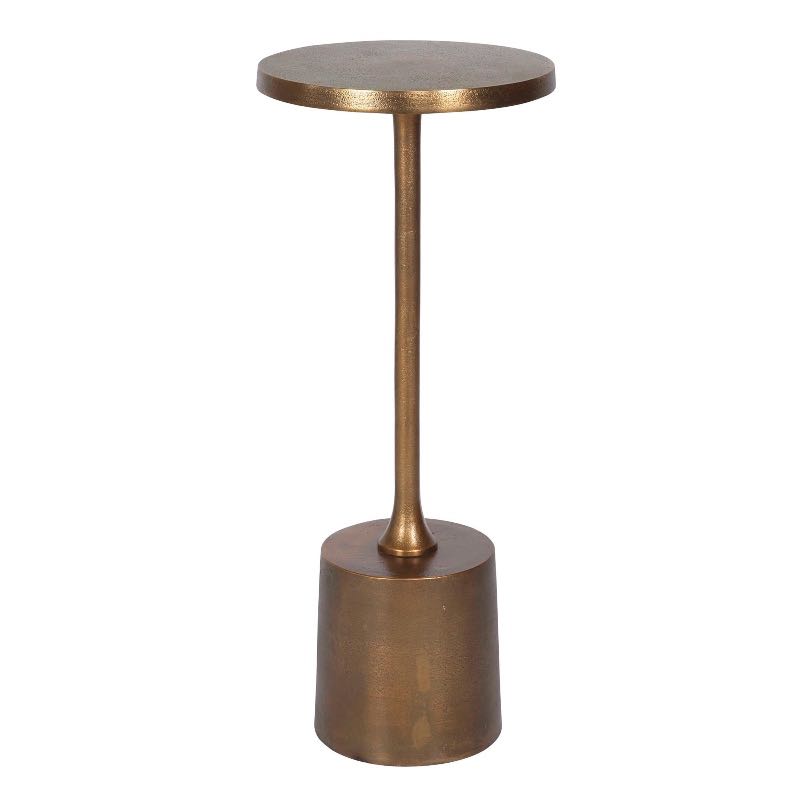 Our Antique Gold Drink Table is a harmonious blend of minimalist elegance and bold charm. Crafted with a robust base this table boasts a richly textured finish in a timeless antique gold hue. Whether placed beside a sofa or used as a standout piece in your entertainment area its 25 height and sleek silhouette make it a versatile choice for...read more
