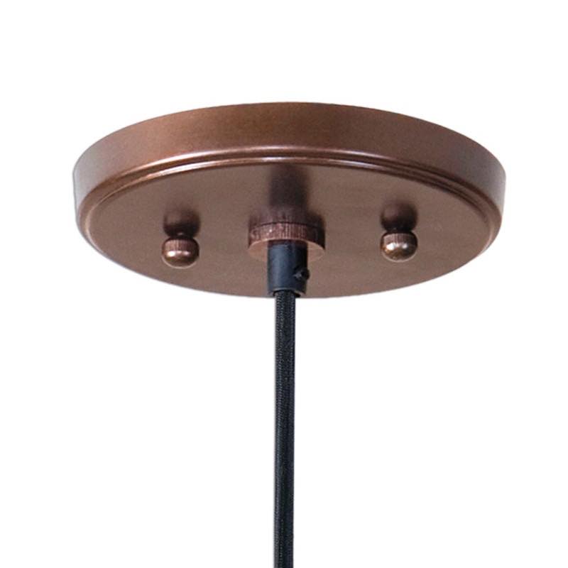 Handcrafted of steel with a rich polished copper finish and wood accent this sleek one-light style features an elegant design and feels right at home in both modern and traditional spaces. A striking look over an eat-in kitchen table this classic 1-light pendant lends warmth and farmhouse country-chic style. A traditional antique copper finish delivers warm appeal to the flattened round metal shade. A simple connecter delivers charming character to complete the stylish look.