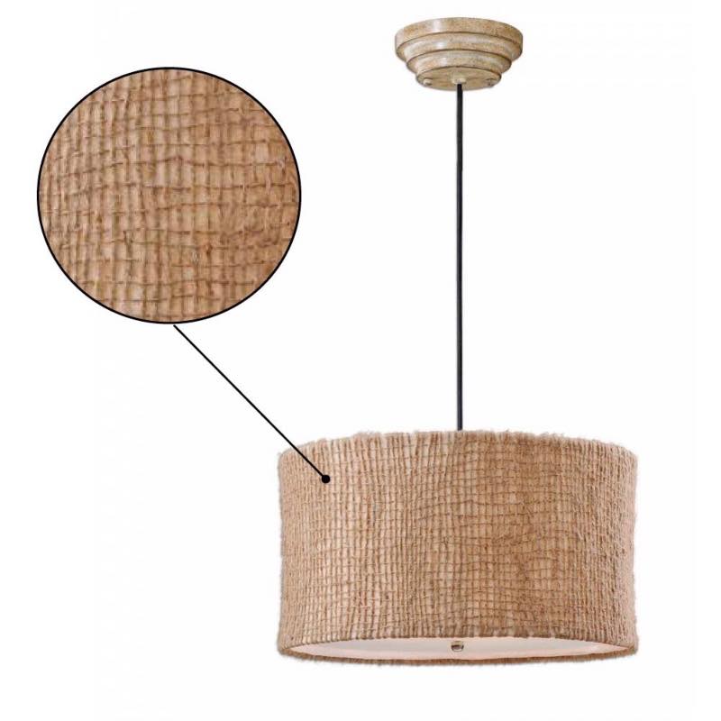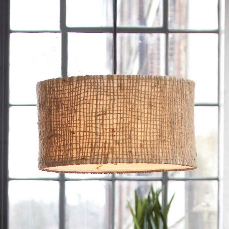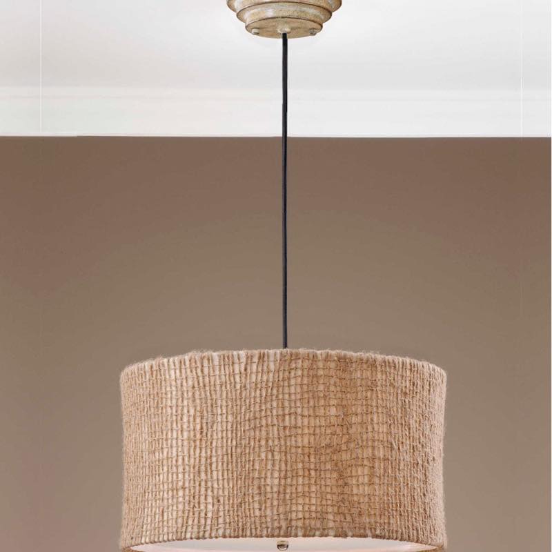 Warm up your rooms aesthetic when hanging this textural drum pendant light. Open-weave construction from natural twine gives the shade earthy appeal and durability over time while a glass diffuser filters illumination from three interior lights for a soft glow in your room.