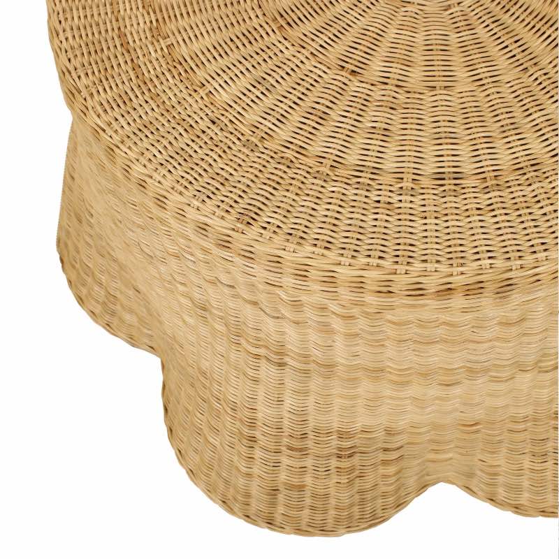 Our scalloped rattan cocktail table adds natural elegance with intricate weaving and organic curves. Lightweight, yet durable, it blends effortlessly with modern, bohemian, or coastal decor. Its airy design brings warmth and texture, creating a relaxed yet stylish ambiance—perfect for a timeless, functional statement piece in any space.
