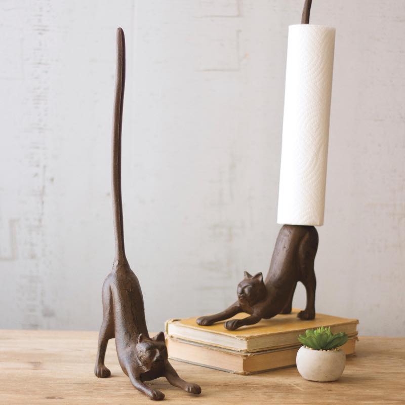 Whether youre reaching for a paper towel in the kitchen or in the bathroom this Cast Iron Cat Paper Towel Holder is sure to bring a smile to your face. Its not just a utility item; its a little piece of art that adds personality and charm to your home.