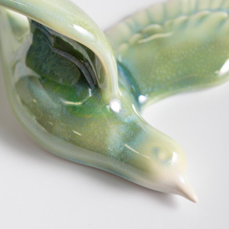 Hang these graceful birds in a choice area and watch your space come alive in a dazzling display of blue/green hues. Designed to add a beautiful, artful touch to the walls at home in an eye-catching 3D way. Their contemporary but natural design will give your home a splash of elegance and create an experience for you and your guests. These high-quality ceramic pieces are designed to impress and offer an integrated nail hole for ease of hanging.