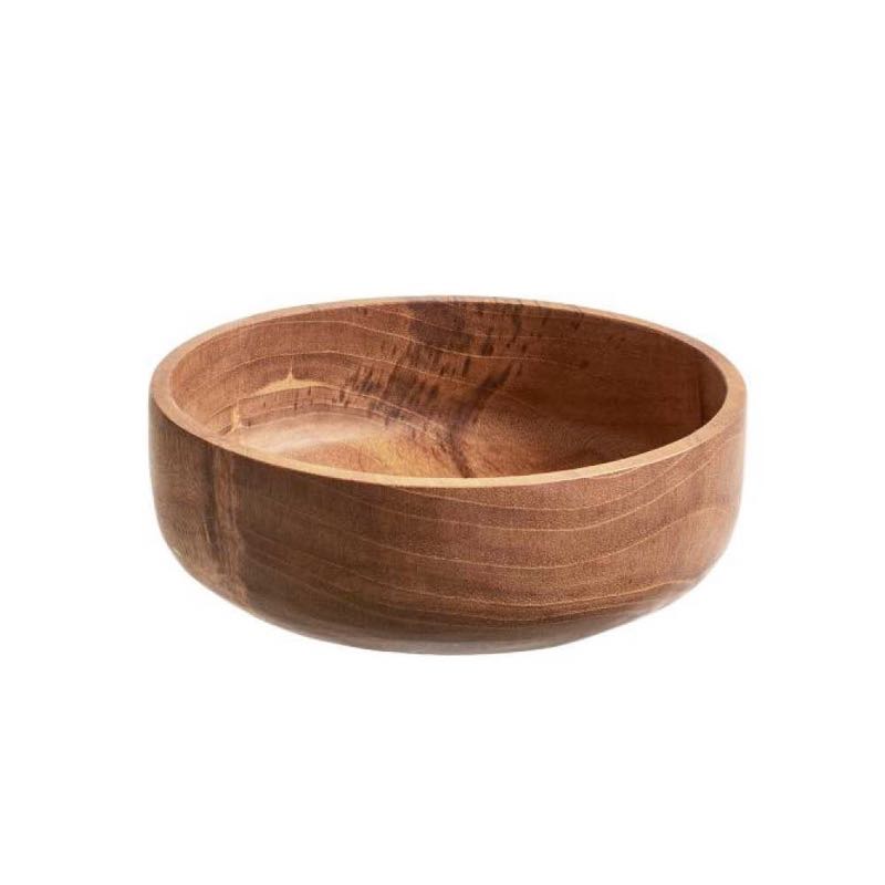 Add a striking organic accent to your tabletop with this wood-turned bowl. Artisans in Indonesia hand-carve Javanese teak to create these decorative bowls. Shaped from richly grained solid teak the design reveals visible knots and natural holes each one varying in shape size and color for one-of-a-kind character. Perfect for stowing small items in style its ideal for use indoors and out.