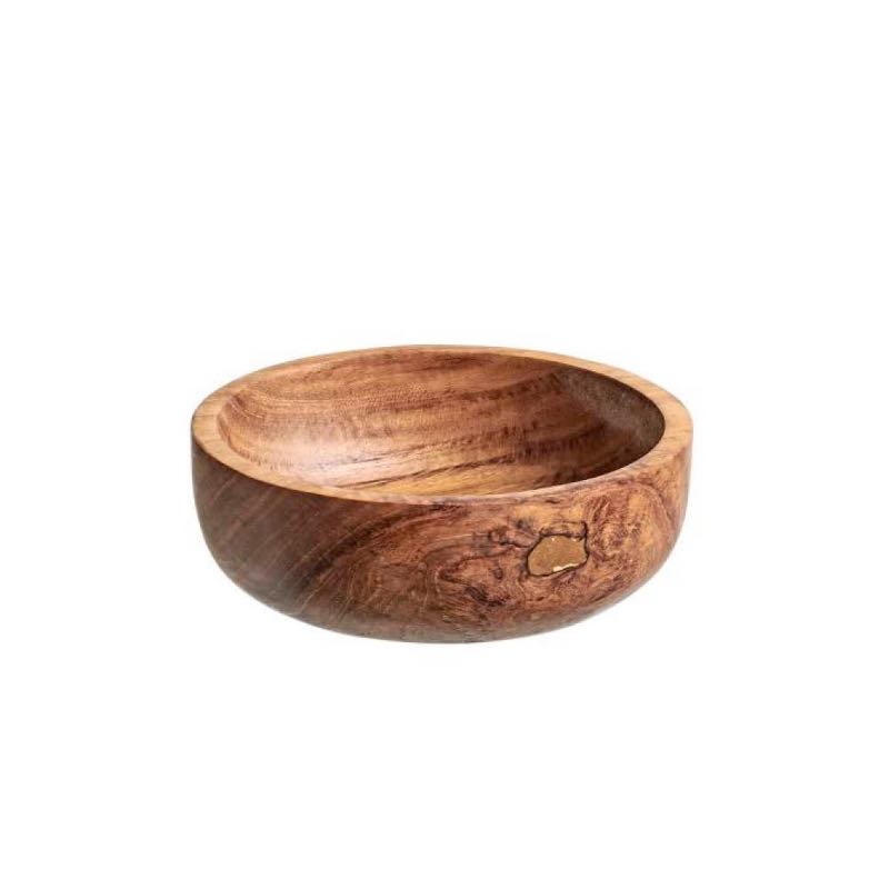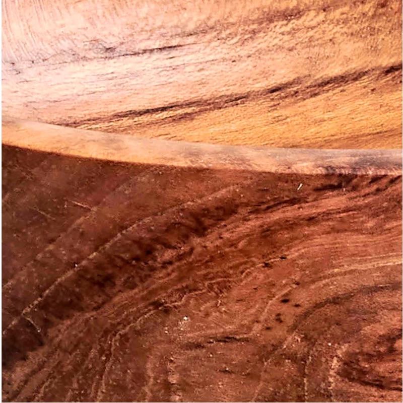 Add a striking organic accent to your tabletop with this wood-turned bowl. Artisans in Indonesia hand-carve Javanese teak to create these decorative bowls. Shaped from richly grained solid teak the design reveals visible knots and natural holes each one varying in shape size and color for one-of-a-kind character. Perfect for stowing small items in style its ideal for use indoors and out.