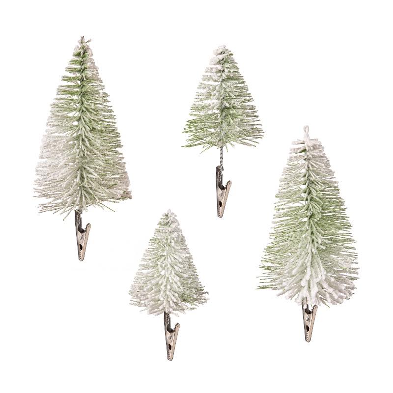 Clip-On Bottle Brush Flocked Mini Trees, Set of 4