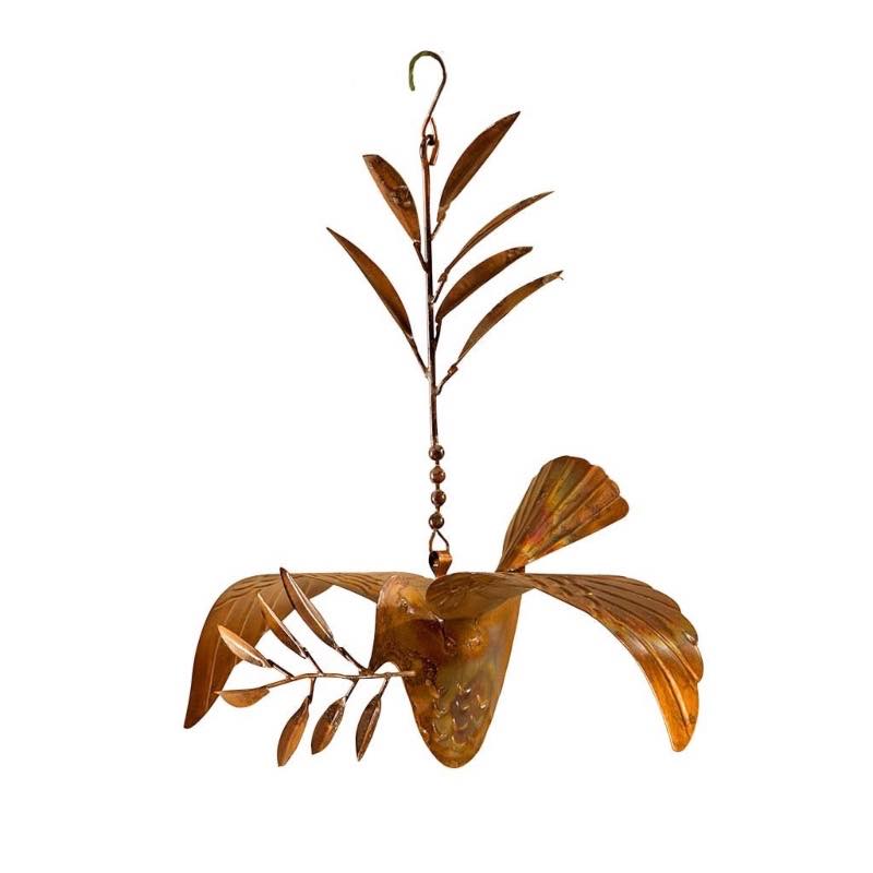 A delicate addition to let soar in your garden. This sweet antiqued copper dove holds an olive branch and offers a peaceful presence in the garden. VivaTerra Exclusive.