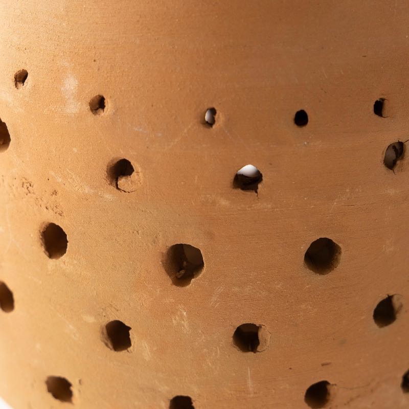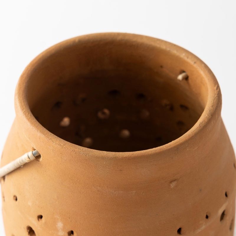 Illuminate your space with the warmth and charm of our Cut-Out Dots Clay Lantern. Crafted from terracotta, this lantern features intricate cut-out patterns, allowing candlelight to shine through in captivating patterns. Designed to hold votives or tealights, it sets your environment aglow with soft ambient light.
