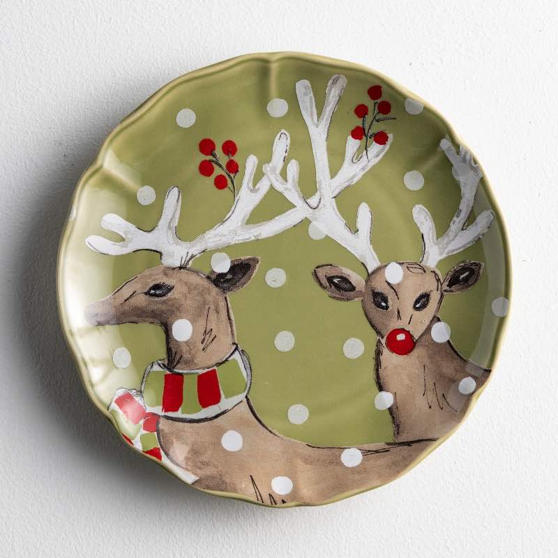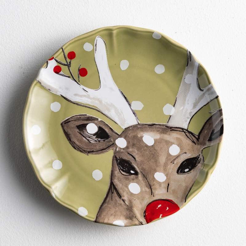 Elevate your festive table setting with our Deer Portrait Dessert Plate Set. With an exuberant blend of holiday-inspired white and green hues, each plate is delicately hand-painted to bring to life a unique portrait of enchanting deer. The set includes four distinct designs that effortlessly layer with other table pieces, making every meal a heartwarming experience.