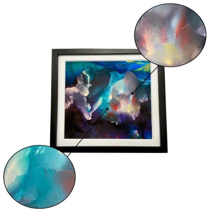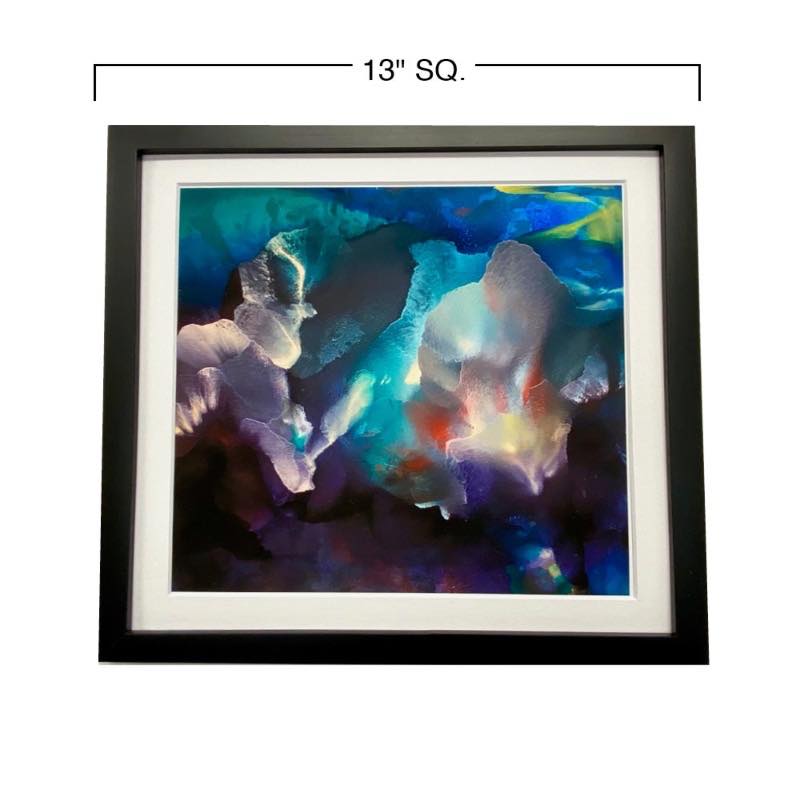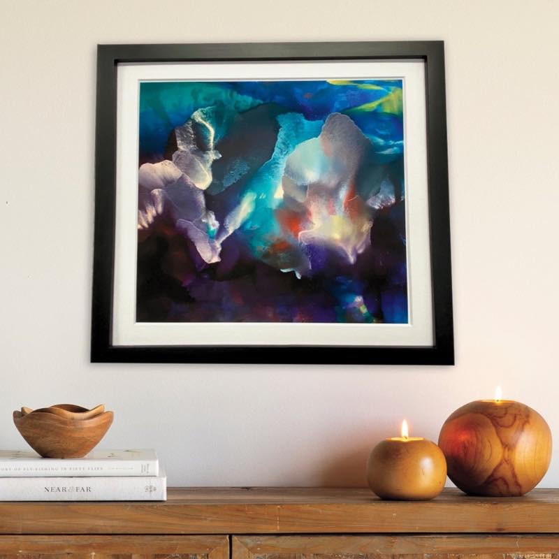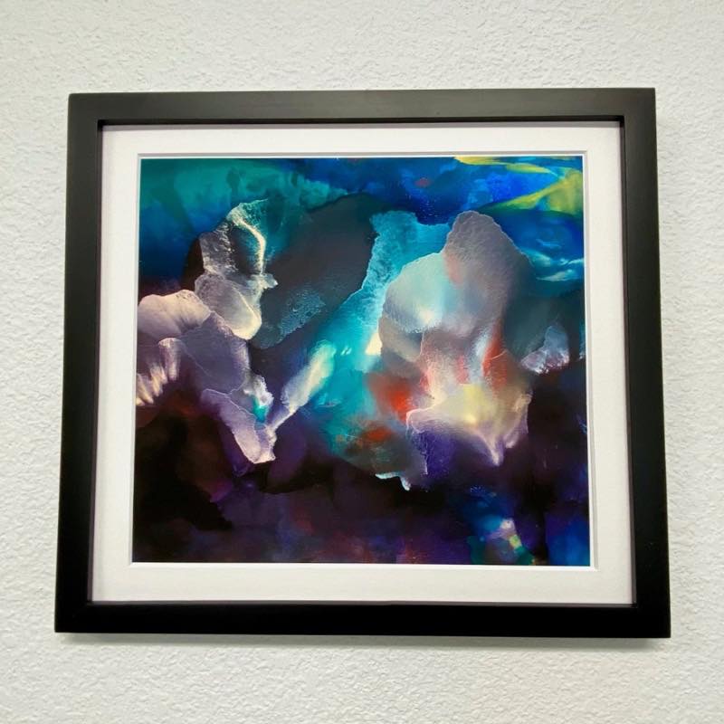 Delphinium is inspired by the interaction and movement of light underwater. Delphinium is printed on premium paper and arrives in a black frame. There are 50 limited editions with the artists signature.