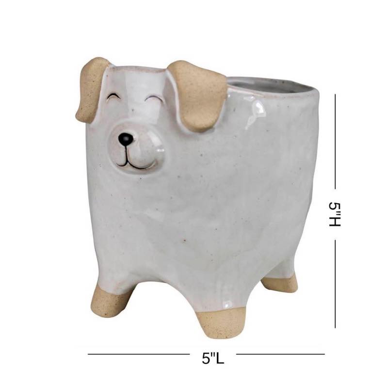 A plant's best friend is the planter it lives in, so showcase your favorite greenery in our adorable handcrafted ceramic dog planter! With its hand-decorated details, each planter is one of a kind. Use this happy hound to hold succulents or spare change, in small spaces, or on your desk, or give him to your dog-loving friend or neighbor.