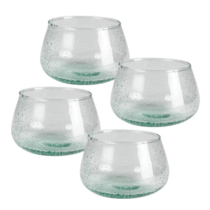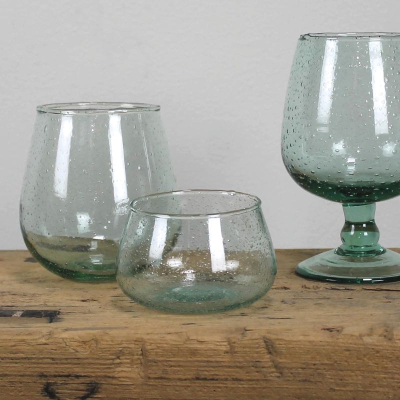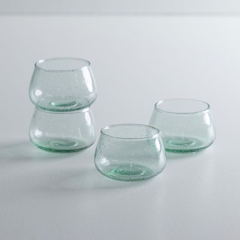 The Estancia Sipper Glassware set exemplifies artisanal craftsmanship from India, merging traditional techniques with contemporary design. Each piece is handcrafted, ensuring that no two glasses are exactly alike, adding to their unique charm. The use of seeded glassware, characterized by tiny bubbles throughout the material, gives these sippers an intriguing visual texture thats both beautiful and tactile.