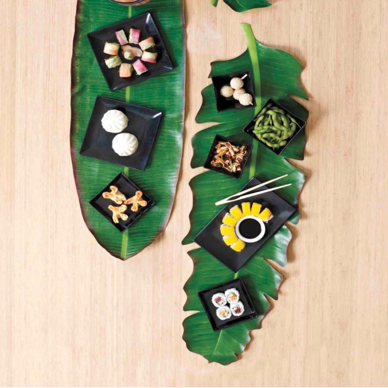 Indulge your wild side with this table textile that looks like you have gathered them from a jungle path. Each easy-to-clean EVA foam piece is screen printed to give the leaf a life-like appearance. A perfect way to create a tropical beachy vibe for your next gathering.