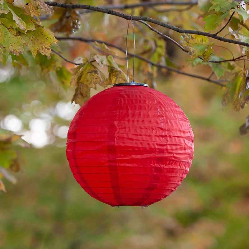 The Festival Solar globe is a 12 UV-treated nylon lantern that brings a bold yet elegant glow to your outdoor spaces. The perfect choice for an outdoor soiree. This 12 round Asian-inspired festival lantern is constructed of durable weather-resistant nylon and comes equipped with white LEDs and a stainless steel hanging handle. The Festival lanterns feature our updated and brighter solar housing and can be hung outside in a tree off a porch overhang or can sit on a tabletop using the included base unit. Created for outdoor use year-round; place in direct sunlight.