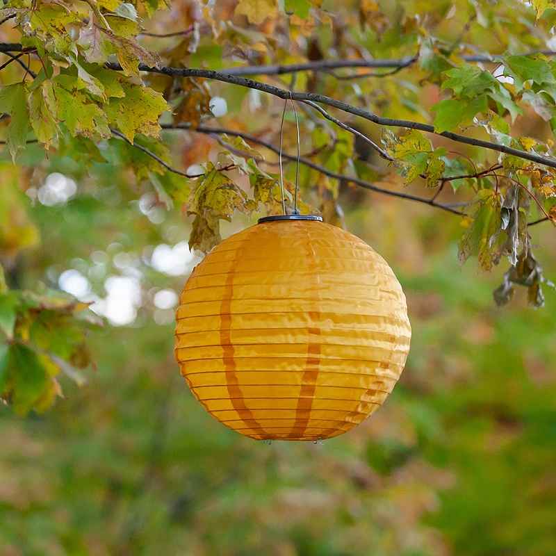 The Festival Solar globe is a 12 UV-treated nylon lantern that brings a bold yet elegant glow to your outdoor spaces. The perfect choice for an outdoor soiree. This 12 round Asian-inspired festival lantern is constructed of durable weather-resistant nylon and comes equipped with white LEDs and a stainless steel hanging handle. The Festival lanterns feature our updated and brighter solar housing and can be hung outside in a tree off a porch overhang or can sit on a tabletop using the included base unit. Created for outdoor use year-round; place in direct sunlight.