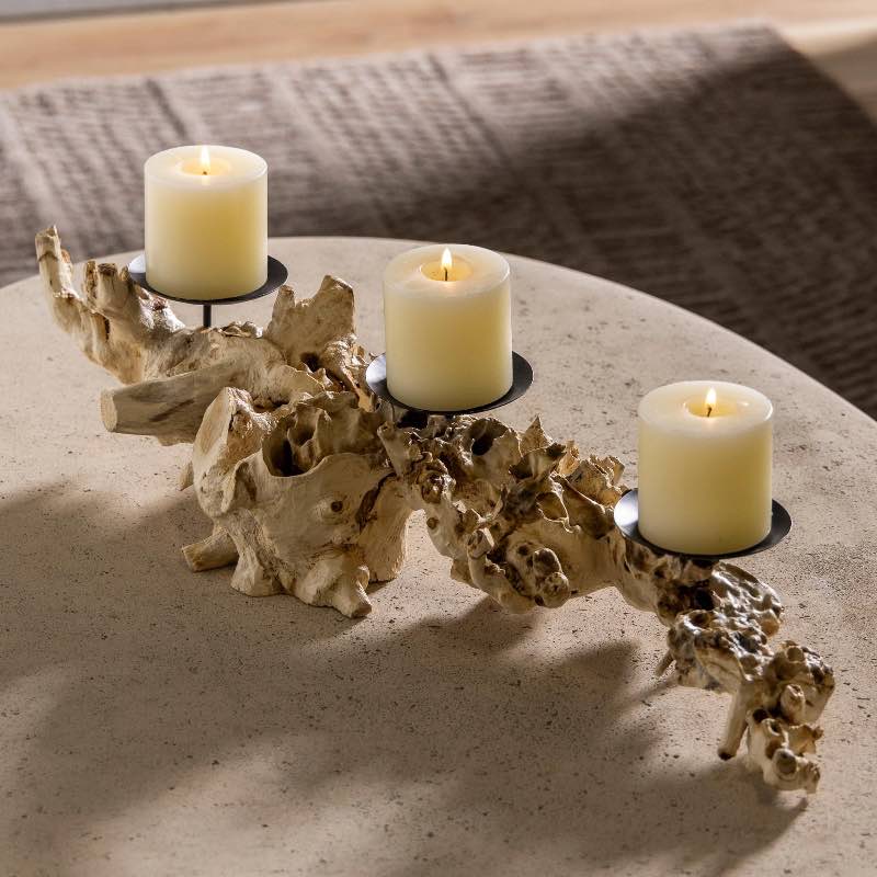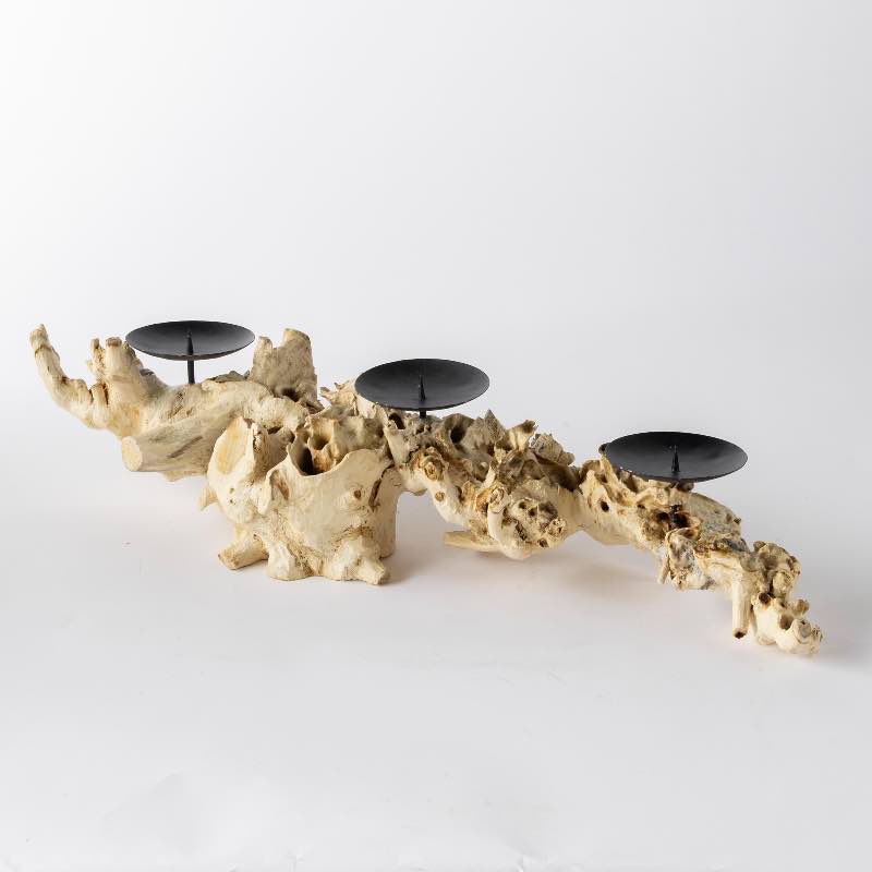 Add a touch of natural elegance to your home with the Gamma Wood Candle Holder. Crafted from the exceptionally beautiful and rare Gamma Proa Wood, this unique piece showcases a twisted interlocked grain that creates a captivating wild appearance. Handcrafted by our artisan partners in Indonesia, each one holds three votive candles, making it the perfect centerpiece for any table...read more