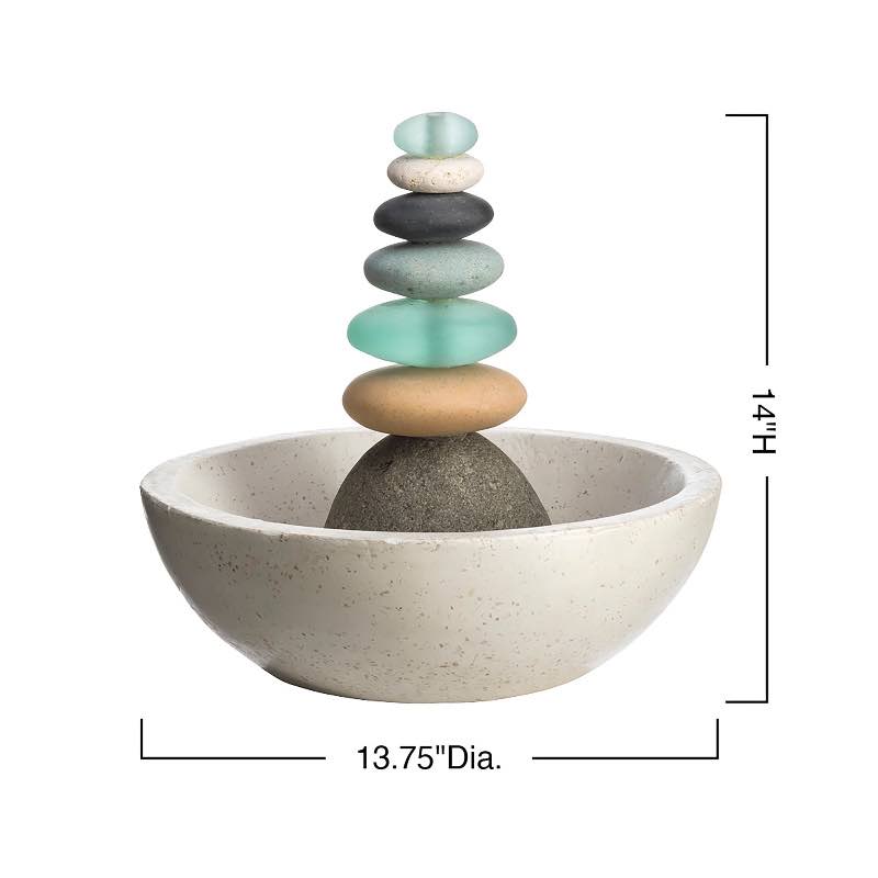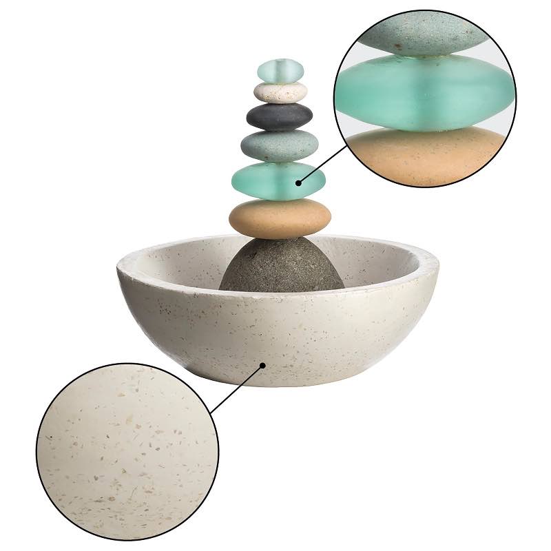 Soothing waters stream down this fountain's colorful stones and recycled glass, bringing peace to your surroundings. Handcrafted in Indonesia, each stone is carefully chosen and securely placed atop a white marble basin.