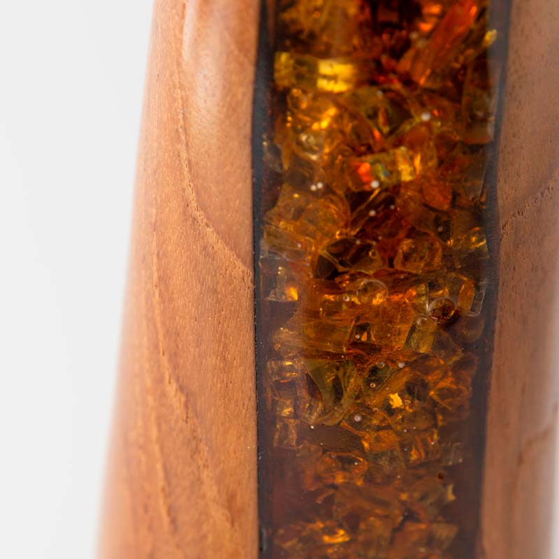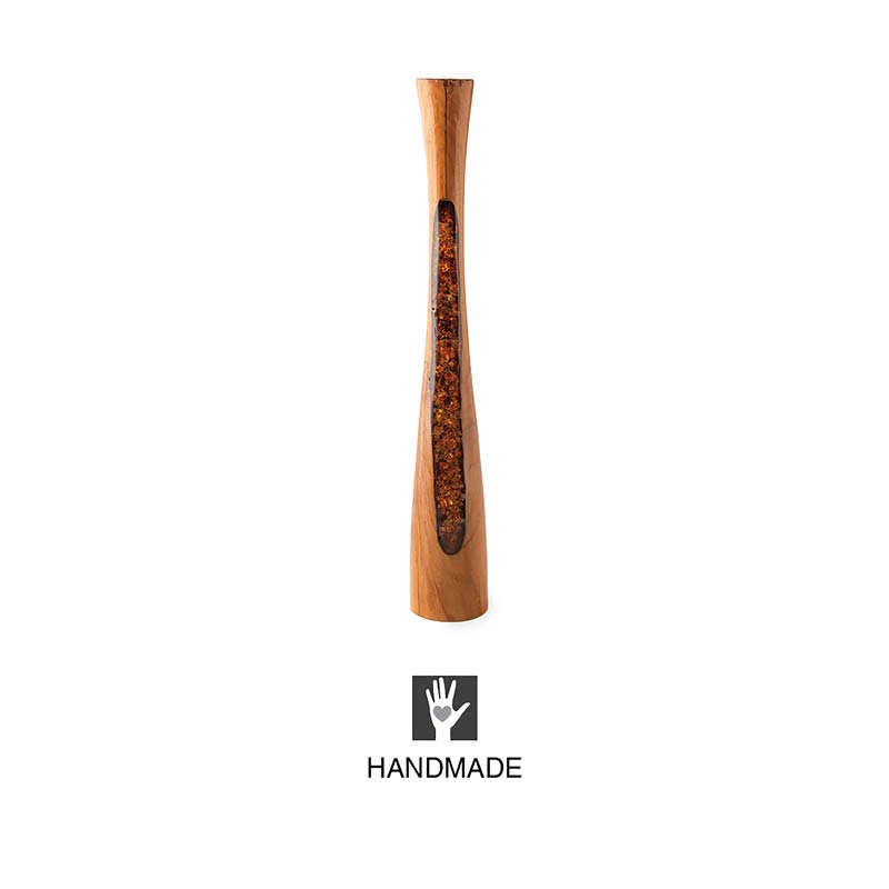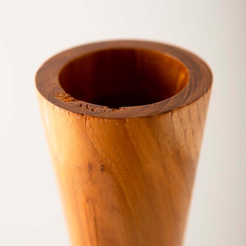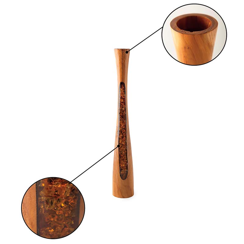Shaped in a tall silhouette, this artisan-made Glass Infused Teak Candle Holder lets flickering candlelight take center stage. A seven-step, multi-day process makes this candle holder a one-of-a-kind conversation-worthy art piece. Set on the hearth or as a tabletop centerpiece this unique holder is full of artisanal charm. Tea candle not included.