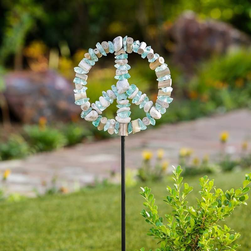 Crafted by skilled artisans in Indonesia, this glass and stone piece captures peaceful sea glass hues. Hand-collected and handmade, each symbol is unique, reflecting nature's beauty and craftsmanship passed down through generations. Perfect for gardens or serene indoor spaces.