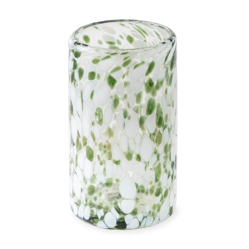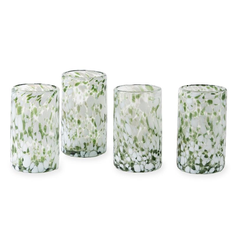 Our Green and White Recycled Glassware is a testament to both beauty and sustainability, turning salvaged glass into exquisite pieces that stand out in any collection. Each glass in this set is dappled with bits of color, creating a unique visual appeal that cannot be replicated, making every piece truly one-of-a-kind.