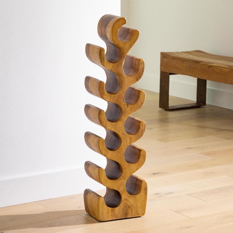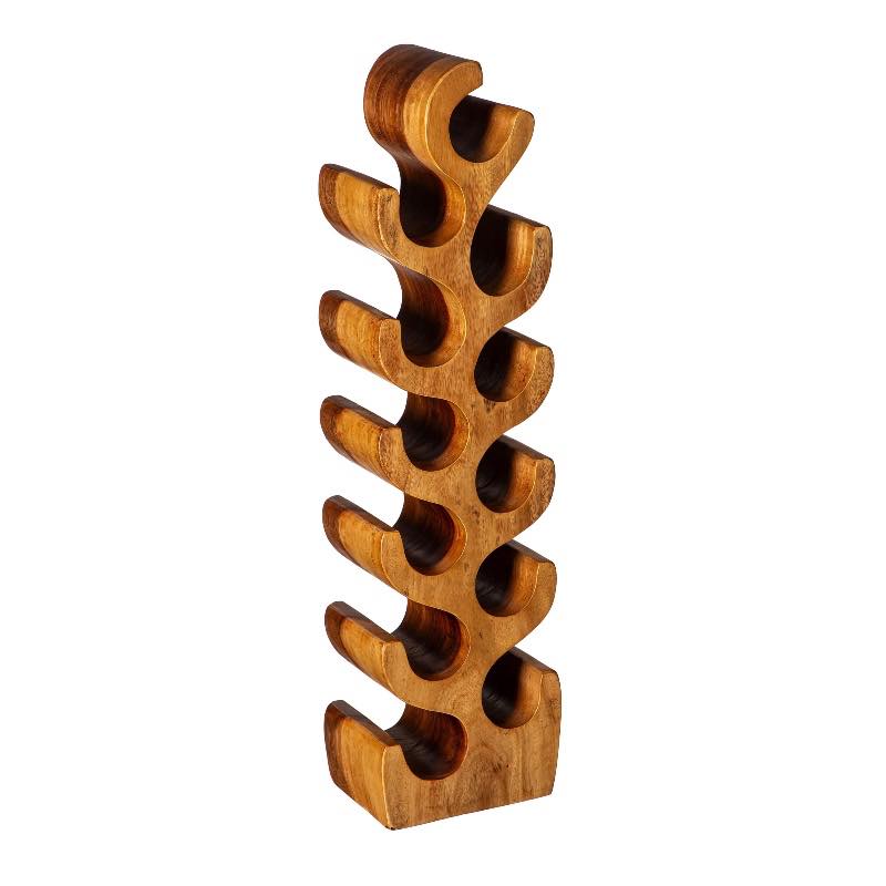 Each wine rack is skilfully carved by artisans in Indonesia, where the traditional craft meets modern function. Their expertise is reflected in the detailed craftsmanship and the flawless integration of form and function that this piece offers.