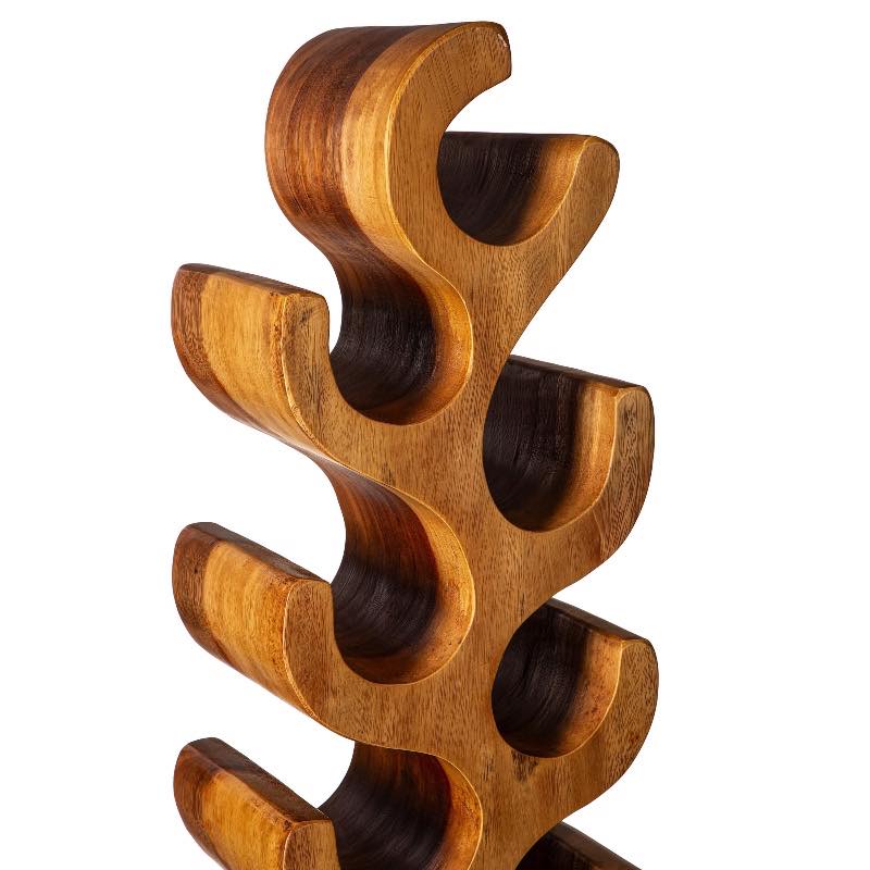 Designed to hold up to 12 standard wine bottles, this wine rack isn't just an accessory, but a functional sculpture seamlessly blending utility with artistry. Its grandiose presence makes it an exquisite focal point in your dining room or wine cellar, enticing guests to admire both the rack itself and the fine collection of wines it showcases.