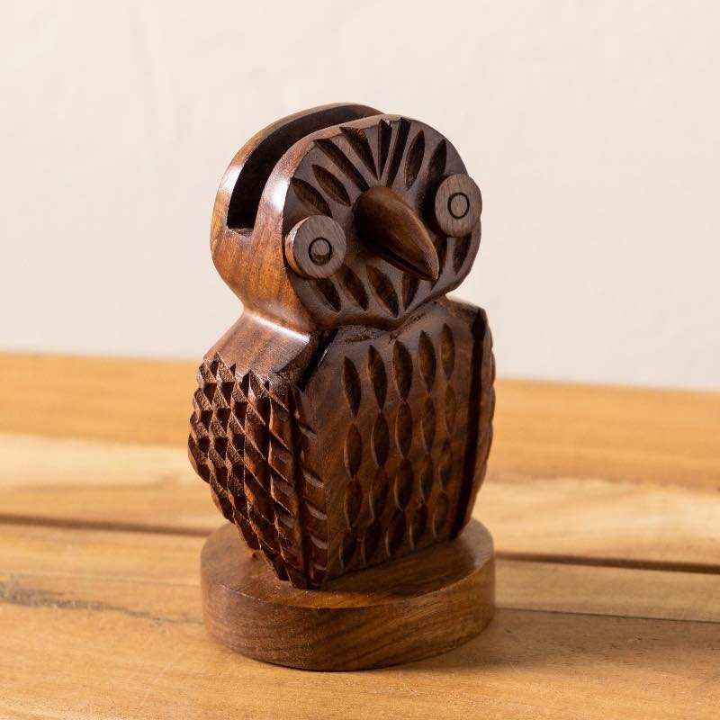 Our Hand-Carved Sheesham Wood Owl Eyeglass Holder is a blend of delightful artistry and practical functionality. Crafted by our skilled artisan partners in India native Sheesham wood is transformed through expert woodworking into a distinctive home decor piece that doubles as the perfect perch for your eyeglasses.