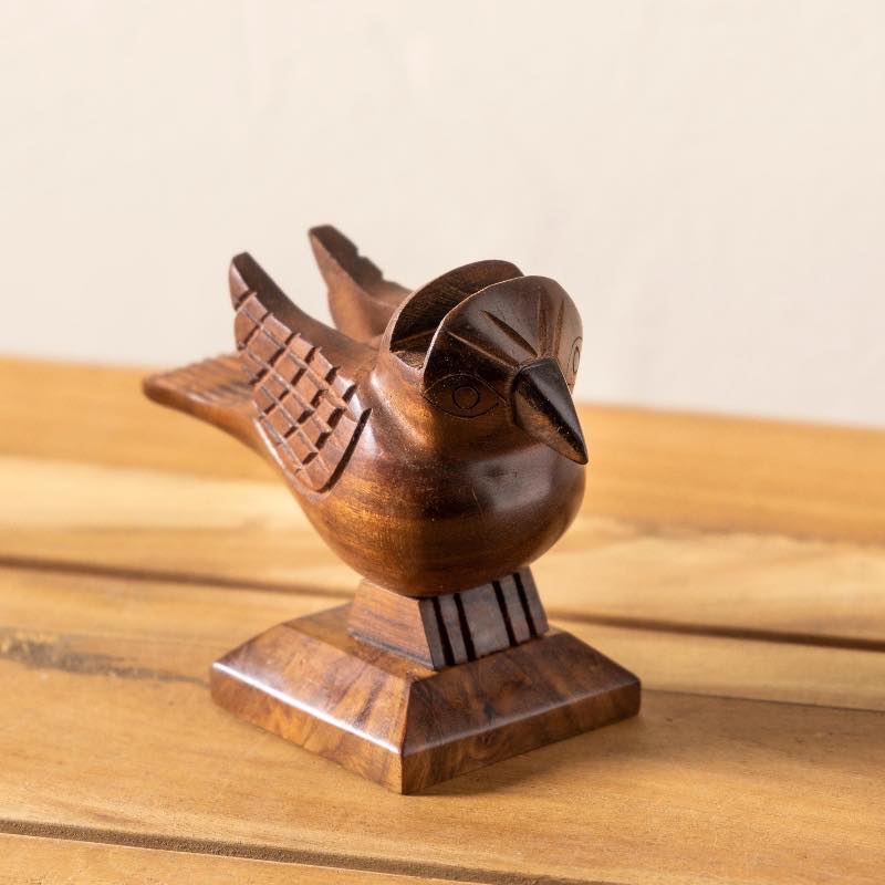 Our Hand-Carved Sheesham Wood Sparrow Eyeglass Holder is a blend of delightful artistry and practical functionality. Crafted by our skilled artisan partners in India native Sheesham wood is transformed through expert woodworking into a distinctive home decor piece that doubles as the perfect perch for your eyeglasses.