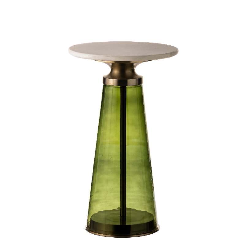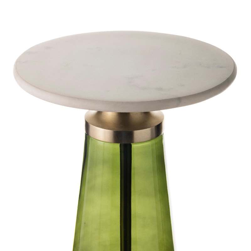 These "place anywhere" side tables draw the eye to anything you showcase on its marble or wood surface. The two-tone drink table adds a touch of luxe to any room with its distinctive silhouette and lustrous contrast of trend-forward tones and brass accents.