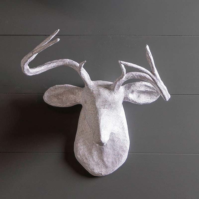 A guaranteed conversation starter these large-scale faux animal heads are handcrafted by an artist collective in Haiti. Made from recycled materials and natural cassava starch glue each is a one-of-a-kind piece of art.