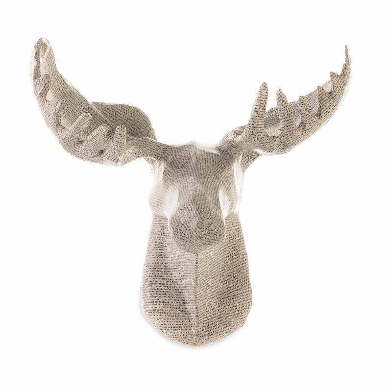 Handcrafted Haitian Artisan Paper Mache Moose Wall Art - Newsprint
