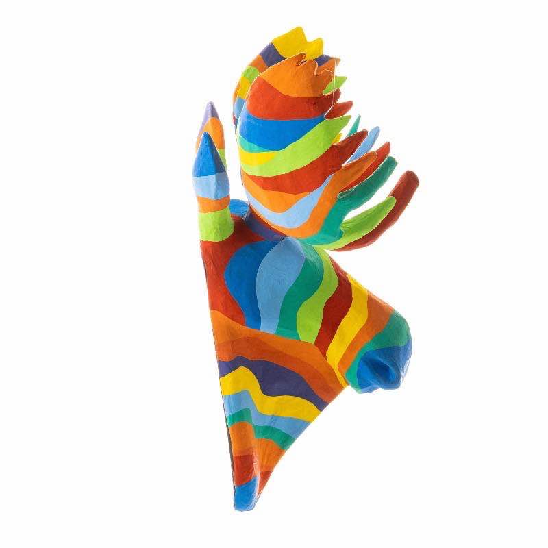 A guaranteed conversation starter these large-scale faux animal heads are handcrafted by an artist collective in Haiti. Made from recycled materials and natural cassava starch glue each is a one-of-a-kind piece of art.