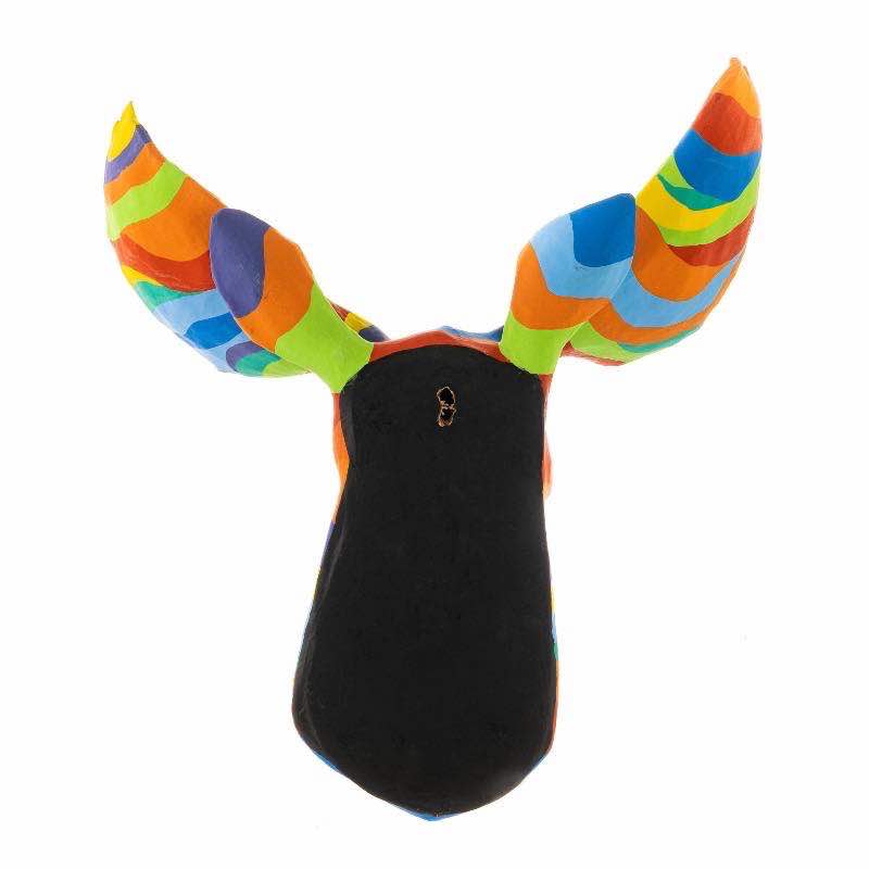 Haitian artisans known for their creativity and craftsmanship have skillfully brought this majestic moose to life using the traditional paper mache technique. The Rainbow option with vibrant and eye-catching colors is skillfully applied further enhancing the mooses presence. The use of bright tones adds a touch of Haitian flair to the artwork making it a beautiful and lively addition to any space. The black-and-white newsprint option is perfect when you need a modern touch and want an unexpected pop of art in your space.