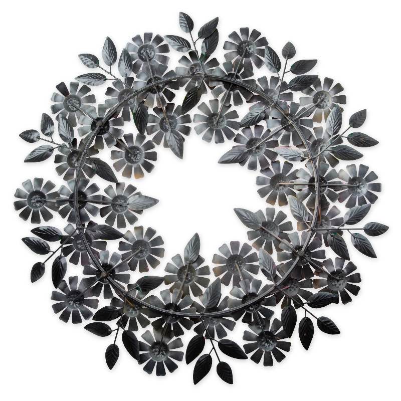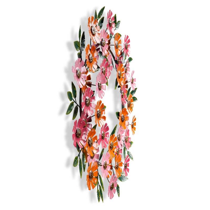 Designed to bring a burst of color and joy to both indoor and outdoor settings this wreath is perfect for adorning walls or doors. Whether youre looking to add a touch of warmth to your home decor or seeking a unique gift this handcrafted wreath fits the bill. Made from a blend of new and reclaimed metal it not only showcases exquisite craftsmanship but also supports sustainable art practices.
