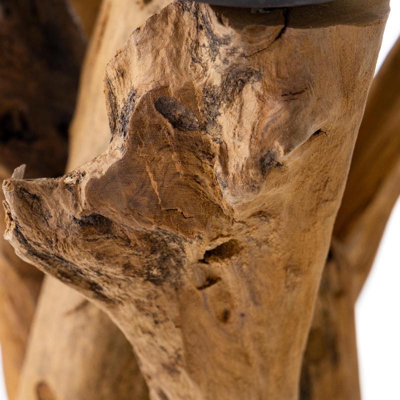 Due to the organic nature of the wood and the artisanal craftsmanship involved each candelabra is truly one-of-a-kind making it a unique and special addition to your home or outdoor patio. This piece not only serves as a functional candle holder but also doubles as a work of art celebrating the beauty of nature and the versatility of teak wood in design.