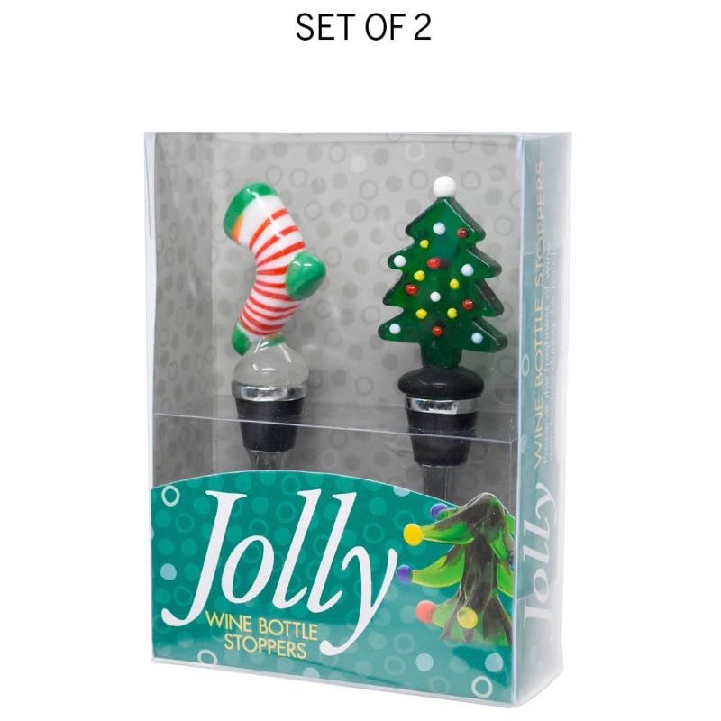 Preserve your wine with a sense of holiday cheer when you use this tree and stocking-shaped wine stopper made of hand-sculpted glass designed to seal the top of any bottle. This festive pair will fit right in with the rest of your jolly barware. It also makes a great hostess gift for any wine lover.