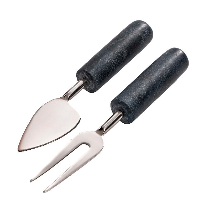 The Hudson cheese knives feature a refined matte finish on their black granite handles creating an impression of delicacy that contradicts the stones robust nature. This matte black stone subtly interwoven with gray shades pairs beautifully with stainless steel. Their design exudes both simplicity and sophistication making them an ideal choice for formal gatherings or casual evenings with neighbors. These...read more