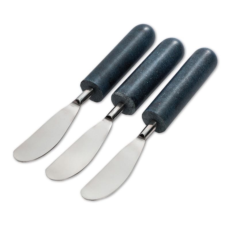 The Hudson cheese spreaders feature a refined matte finish on their black granite handles creating an impression of delicacy that contradicts the stones robust nature. This matte black stone subtly interwoven with gray shades pairs beautifully with stainless steel. Their design exudes both simplicity and sophistication making them an ideal choice for formal gatherings or casual evenings with neighbors. These...read more