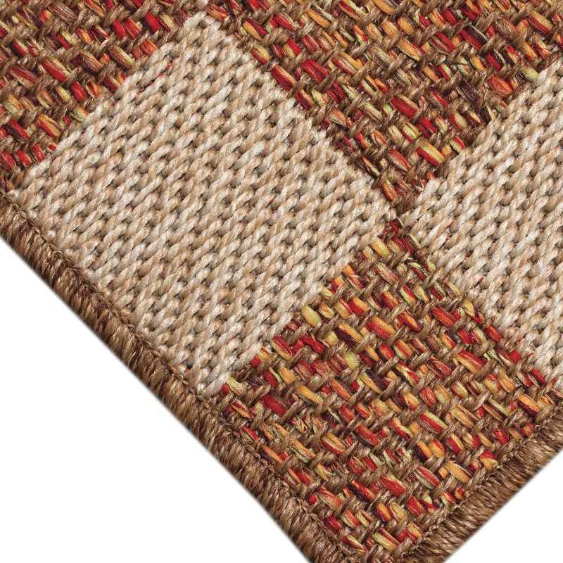 The design showcases a checkerboard motif that adds a warm and inviting touch to any space. The rug is UV stabilized which helps to minimize fading from sun exposure making it an excellent choice for areas that receive a lot of natural light.