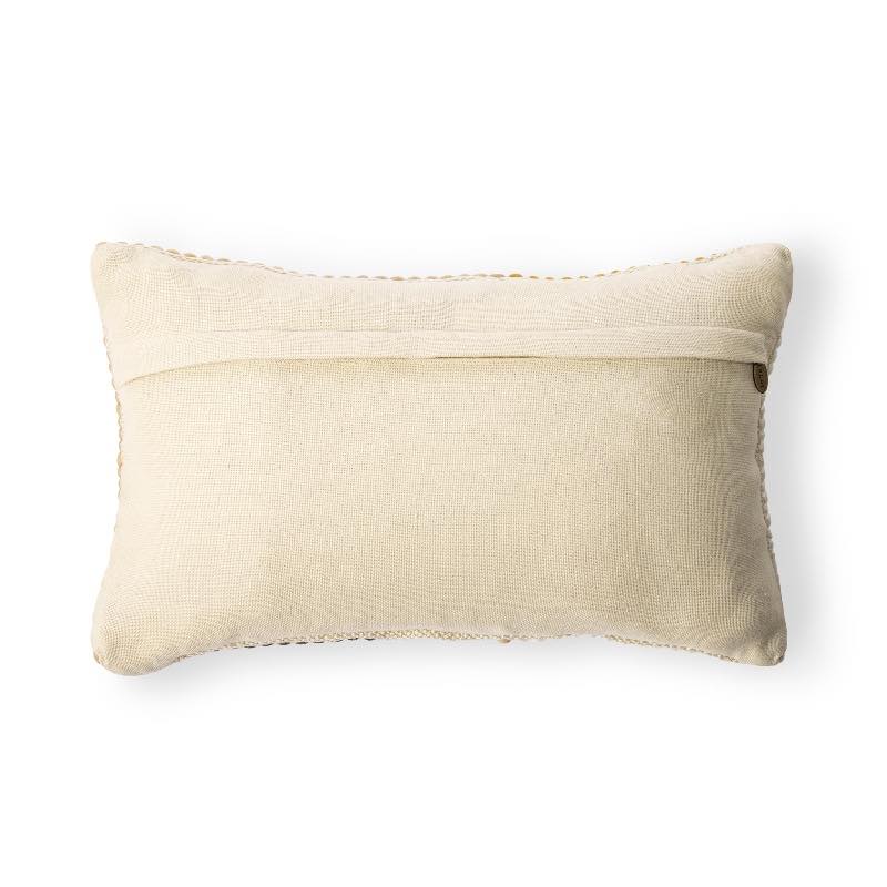 The hooked geometric design brings an engaging texture and a modern look to your decor, making it an ideal accent for sofas, chairs, or outdoor seating. Sized at 13 in x 21 in, it fits well in various settings, adding both style and comfort.