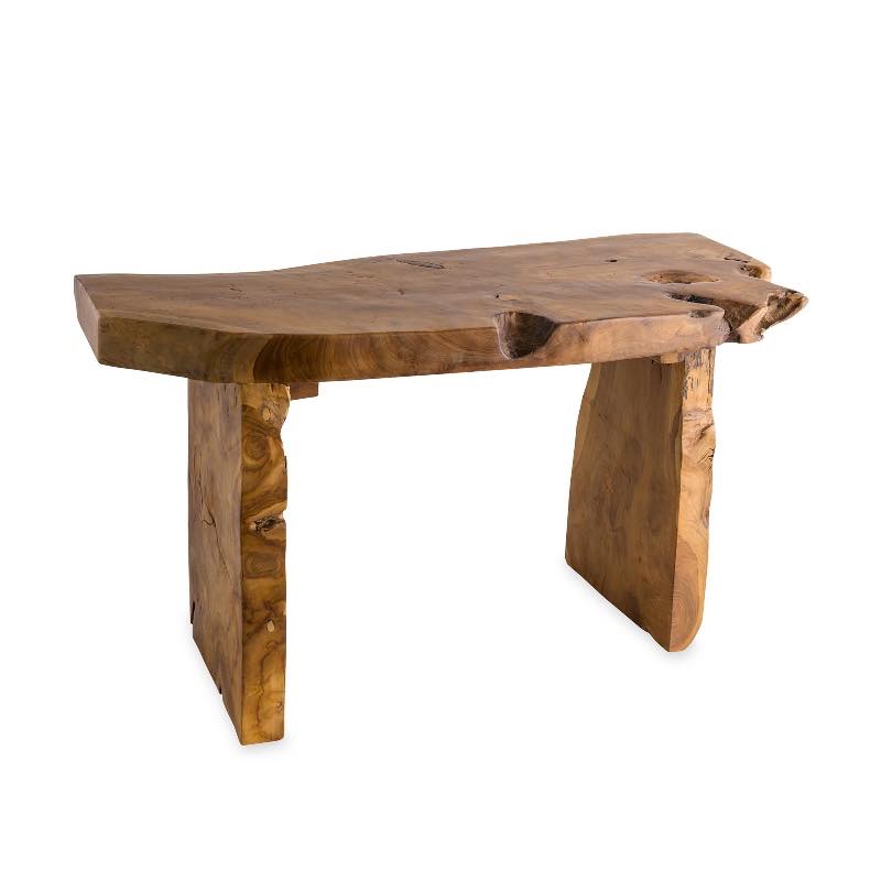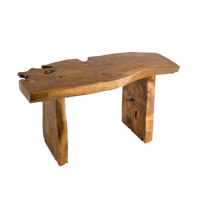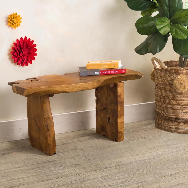 This solid, reclaimed Small Garden Teak bench has a natural live edge that displays the unique grain pattern of its source tree, and is finished with a beautiful rich natural stain. The nature of the Teak wood allows this bench to live in an outdoor setting, as it is naturally water repellent and resistant to termites and other pests. The simple...read more