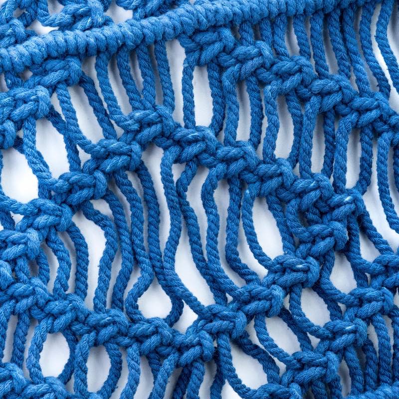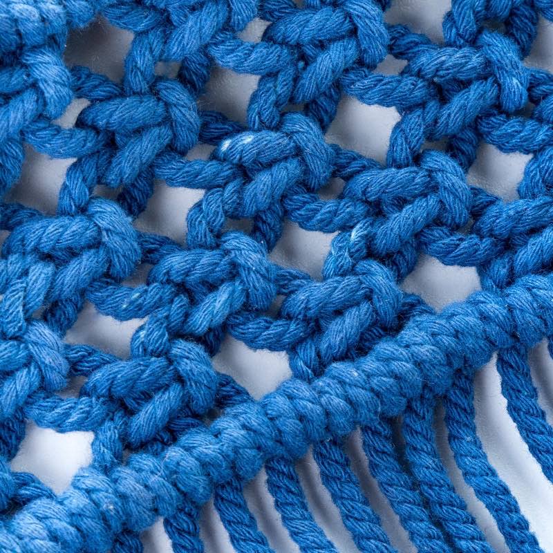 Adorned in deep, captivating navy blue, this sizable wall hanging commands attention and exudes a sense of sophistication. The intricate knotwork, meticulously handwoven by skilled artisans, showcases the mastery of their traditional techniques, resulting in a stunning display of textures and patterns.
