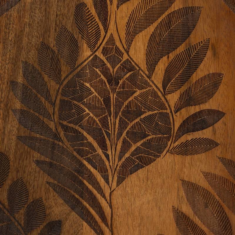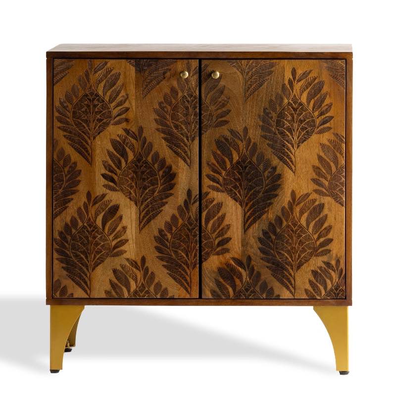 Our Laser Engraved Feather Cabinet brings unique style to your home. Handcrafted in India, this cabinet features front doors with an intricate laser-cut feather design, offering both beauty and functionality.