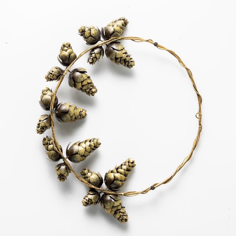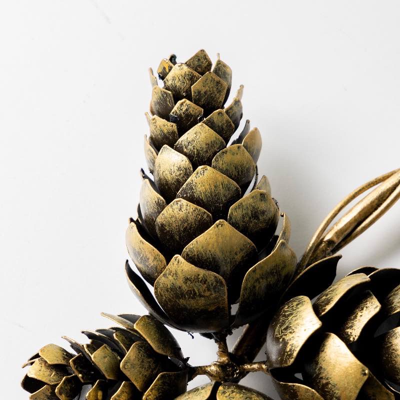 Infuse your autumn decor with the distinctive charm of our metal pinecone wreath. Featuring pinecones artfully arranged on the bottom half, this wreath boasts a warm patina that brings a modern twist to a traditional design. Its monochromatic look makes a striking statement above a mantel, on an interior door, or suspended in front of a mirror. Expertly crafted in...read more