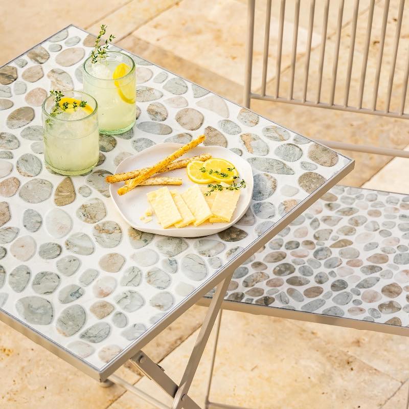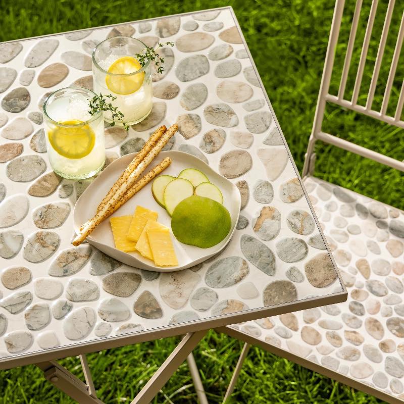 What truly sets the Cali Bistro Set apart is its exquisite printed motif, which artfully replicates the intricate patterns found in natural stone. Each piece in this collection is a work of art, showcasing the beauty of the outdoors right in your own backyard.