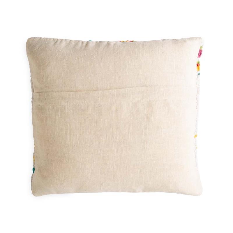 The design is rendered in 100% hooked-wool and finished with a cream linen back. Every pillow includes a removable polyester insert for a plush look and soft feel and the covers zip open and closed for easy removal if needed. Perfect for a season full of bright color and rich texture these pillows set the scene in any room in your home. Linen backing is composed of 95% ramie/5% cotton.