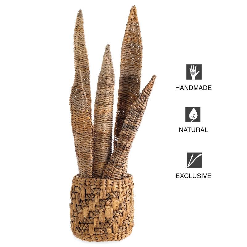 A unique artisan-made alternative to traditional faux plants this woven banana bark snake plant adds natural texture and a distinct silhouette to your indoor garden. With its no-maintenance nature and captivating design this exquisite handwoven snake plant is the perfect accent for any living space adding a touch of natures magic and elevating your interior to new heights of style and sustainability.